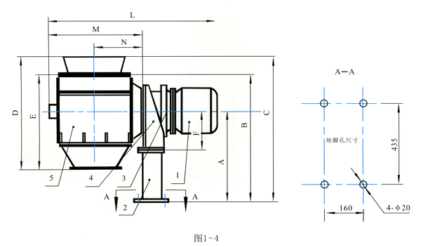 1、電動(dòng)機(jī) 2、支架 3、減速機(jī) 4、機(jī)架 5、整料箱體